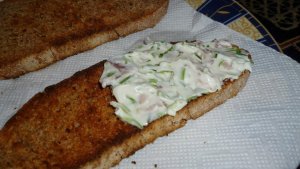 Én saját sütésű félbarna tönkölykenyeret pirítottam hozzá, ízlés szerint rákenjük és jóízűen elfogyasztjuk 🙂
