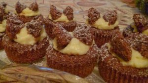 Krém : a puha vajat kikeverjük a porcukorral, belerakjuk a vaníliáscukrokat, vaníliaaromát vagy a kikapart vaníliarúd belsejét majd a mascarponet , jól összekeverjük, a krémet a levágott tető által létrejött részekbe töltjük, a levágott kalapokat kettévágjuk és ráhelyezzük, mintha pillangószárnyak lennének.