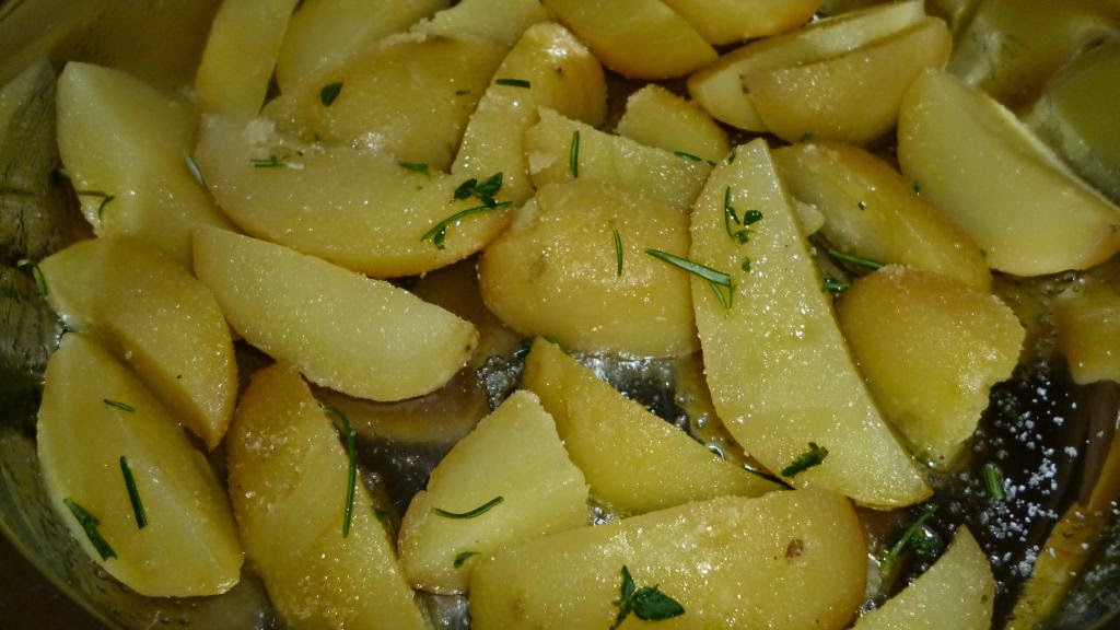 Köretként cikkekre vágott , rozmaringos-kakukkfüves főtt burgonyát adtam.