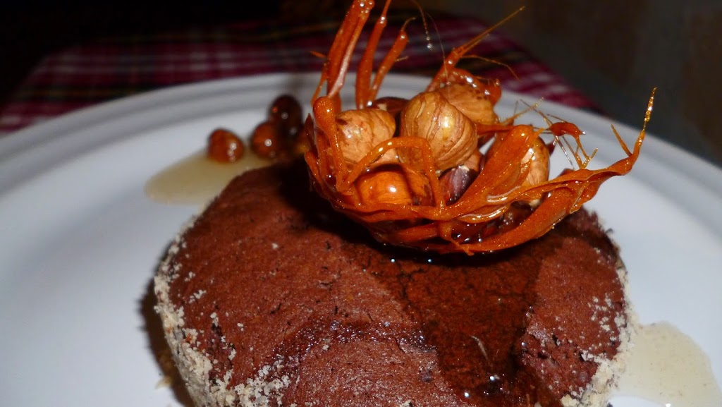 Ebbe a karamellkosárkába adagoltam a mézes mogyoró felét díszítésként.