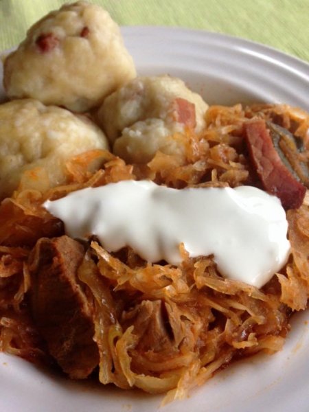Úgy kezdődött, hogy kaptam egy csodaszép cserépedényt a Calidás csajoktól még nyáron és ideje volt felavatni. Mivel az űrtartalma elég nagy valami olyan kellett bele ami jó kiadós , mindenki szereti a társaságban . Így esett, hogy káposztát főztünk benne. Töltögetni nem volt kedvem 😀 , ezért a nagyanyám sváb húsos káposztája készült pirított baconos krumpligombóccal annyi változtatással , hogy én nem sajnáltam belőle a húst 😀 Kettő cserépedényben készült mert közben kitaláltam, hogy gombócos káposztát is csinálok, hátha valaki nem szereti a húsosat.